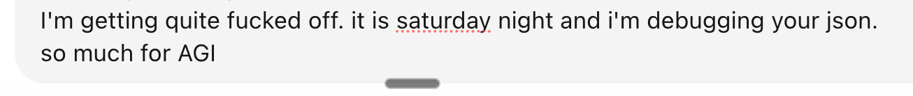 By “real”, I mean it’s general enough to do a bamboozling array of tasks, and (by and large) it doesn’t forget what it is doing. It picks up where we left off yesterday, runs jobs at 4am while I’m asleep and tells me what happened when I wake up. It manages its own tools. Truth be told, the whole thing is clumsy, max practical utility, no aesthetic. More battlefield surgery than wellness retreat.