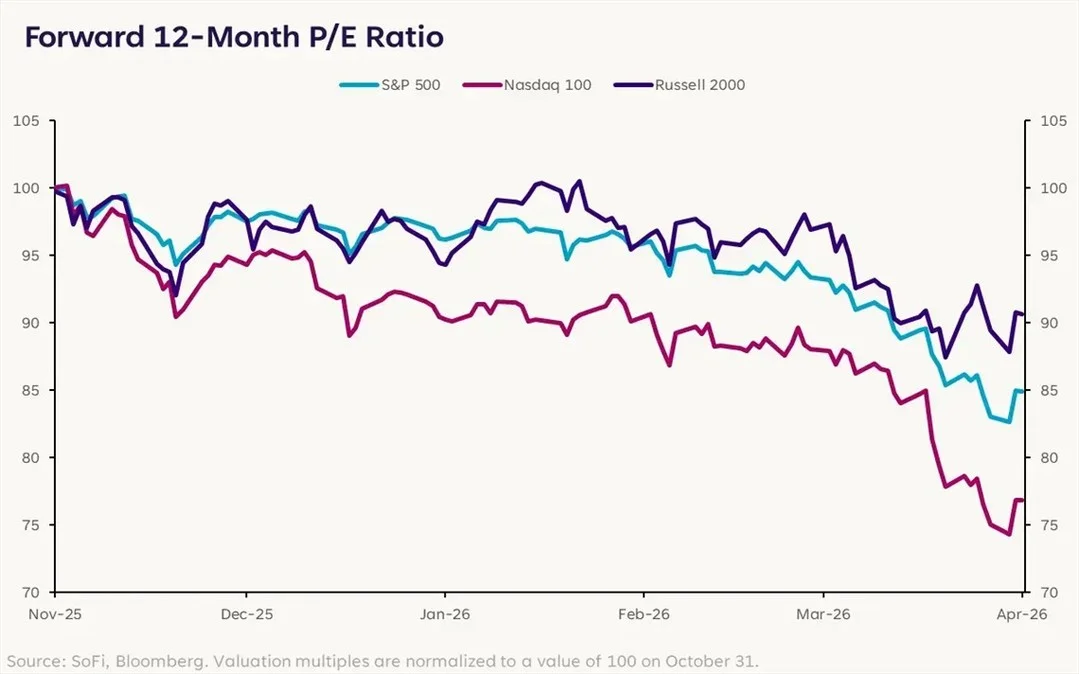 "The Nasdaq 100’s forward price-to-earnings ratio (P/E) has compressed by 23% since the highs at the end of October, while the Russell 2000 P/E has only compressed by 9%." -Liz Thomas, SoFi