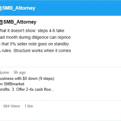 Solid framework. What it doesn't show: steps 4-6 take 60-90 days and a bad month during diligence can reprice or kill the deal. Also that 5% seller note goes on standby for 2 years per SBA rules. Structure works when it comes together though. #SBAloans #BusinessAcquisition #ETA #SearchFund #SMBlaw #BuyABusiness #SellerFinancing #HoldCo #Entrepreneurship #MergersAndAcquisitions