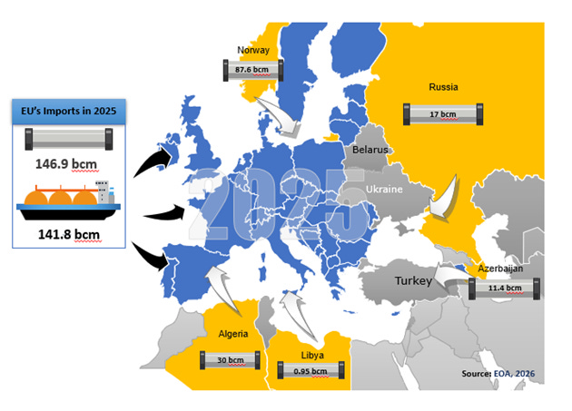 In 2025, the EU’s gas market featured: