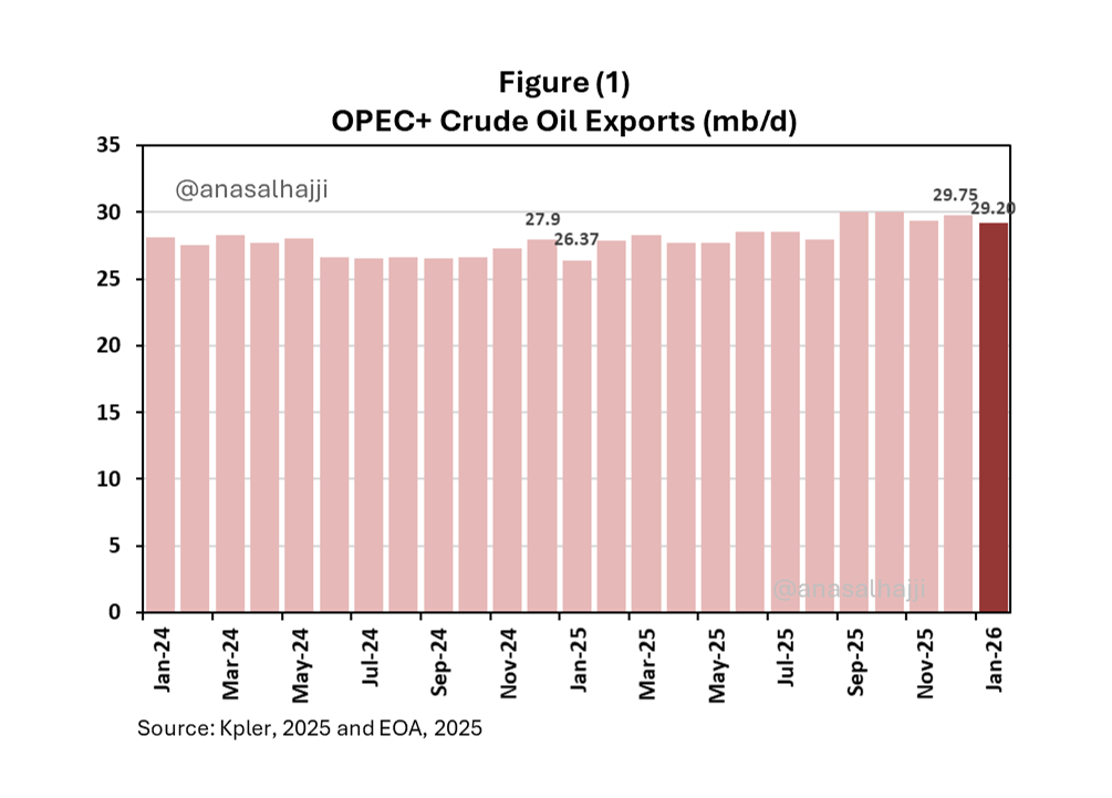 We anticipate a meaningful decline in OPEC+ supplies starting in January — a significant development that directly challenges the prevailing narrative of a large, sustained global oil surplus. Here’s a clear view of the recent monthly trends in OPEC+ exports, including our forecast for January: