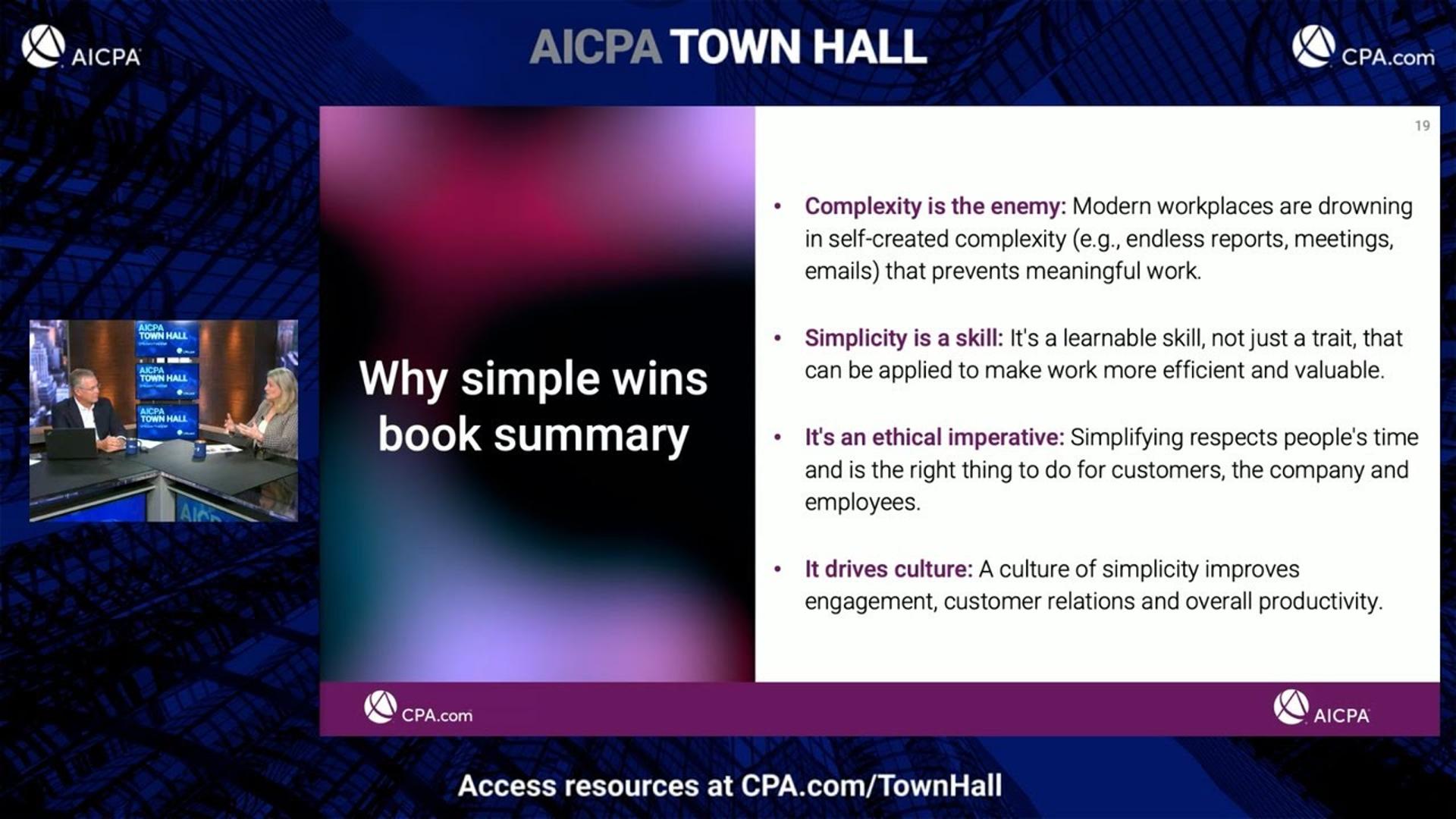 The AICPA’s March 26 town hall opened with a broad agenda—from a Washington, D.C., policy update to leadership insights on simplifying firm operations, a technical briefing, and a risk‑management session. Host Eric Oskerson introduced Mark Peterson, who warned that a looming partial government shutdown is already disrupting TSA, FEMA, and Coast Guard functions, while negotiations over a Senate reconciliation bill could fast‑track defense spending and introduce pay‑for provisions that affect the accounting profession.
