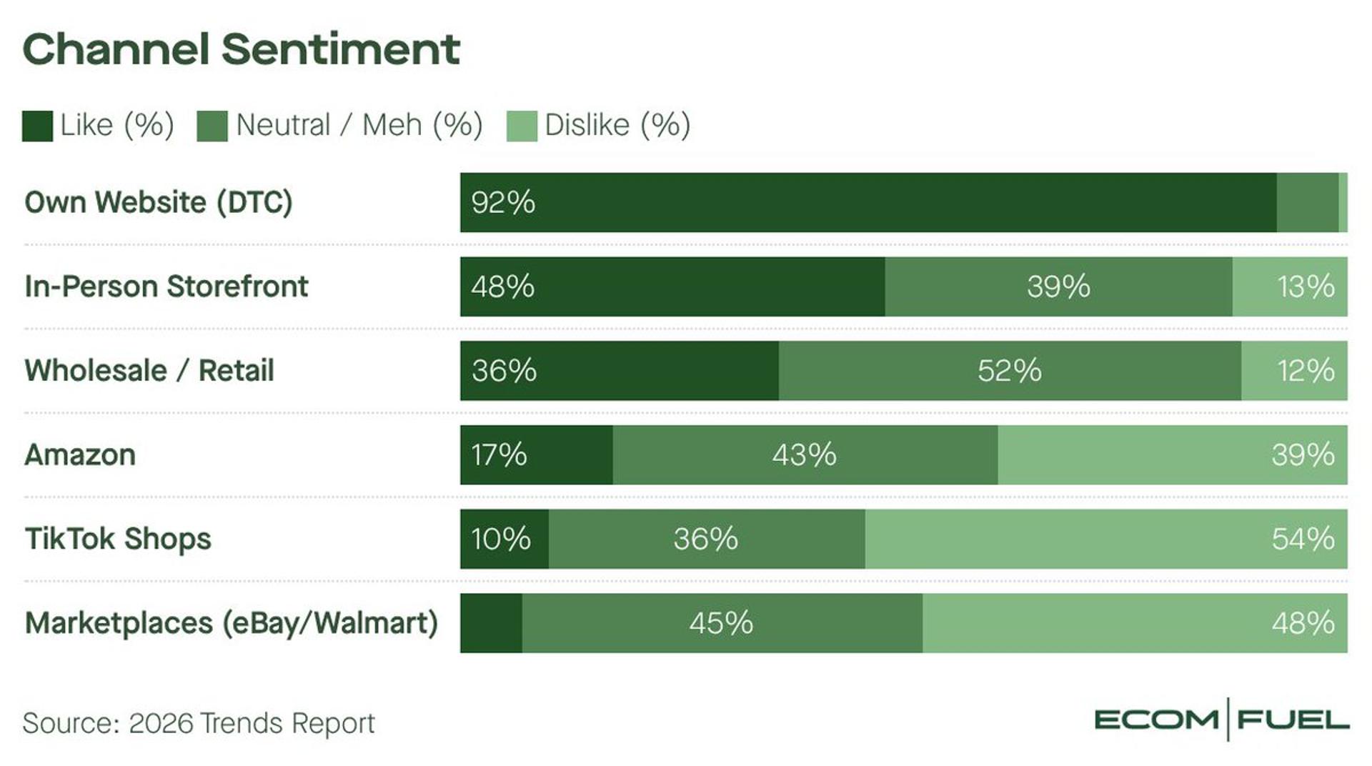 AMZ is moving from mandatory -> ancillary. 17% like selling on AMZ. 93% like selling on their own site. And DTC is more lucrative. Even after accounting for the increased CAC spend, DTC-first brands are making more money per our recent Trends Report. Can't ignore brand demand on AMZ, makes sense to capture it. But as an optional pain-plagued growth channel? AMZ can only squeeze so much. #chartoftheweek