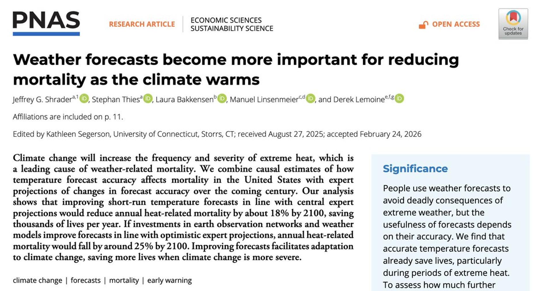 Really cool paper on the value of improved weather forecasts for reducing heat-related mortality. https://t.co/AegtRfLJnR