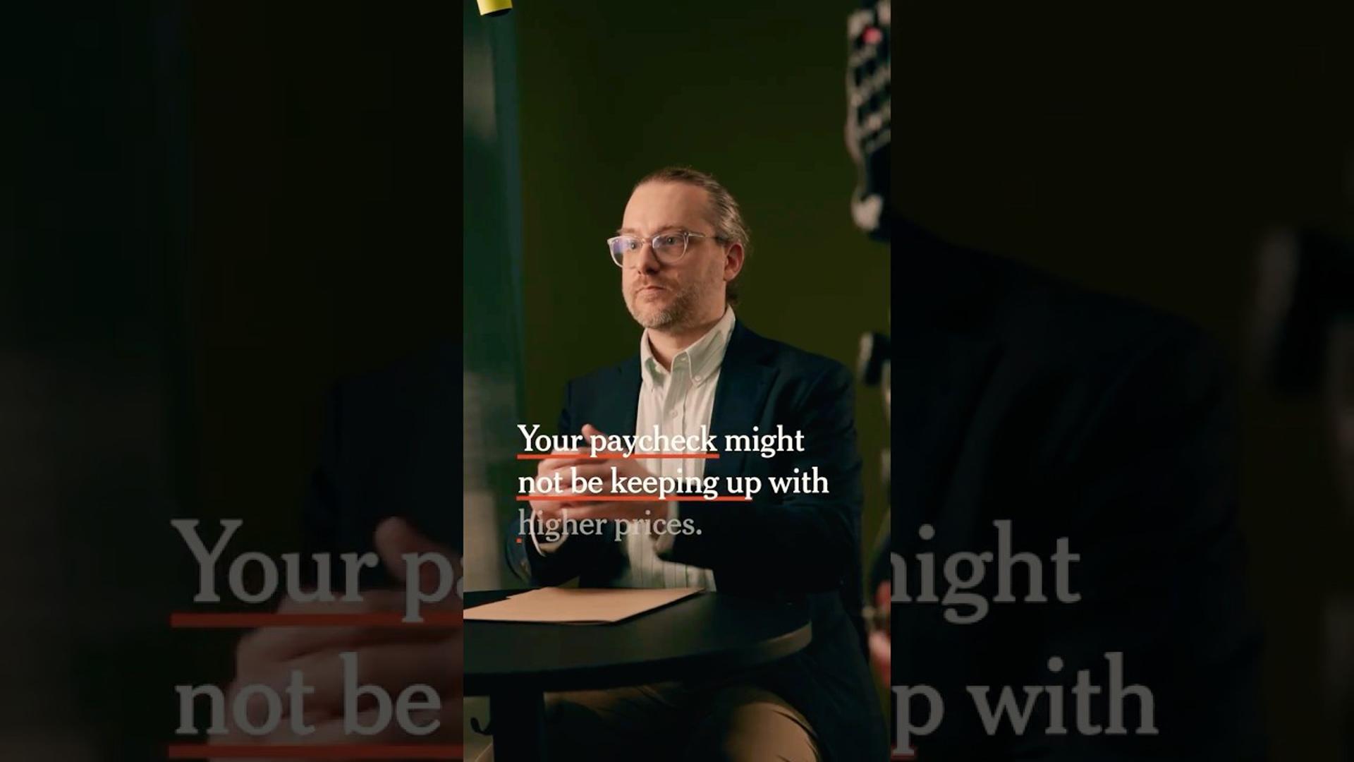 The video examines why American paychecks feel smaller, highlighting the widening gap between wage growth and inflation. Average hourly earnings have risen only 3.12% over the past year, while consumer prices surged after the Strait of Hormuz closure sent oil prices soaring. The chart shows earnings and inflation lines converging, indicating pay is barely keeping pace with price increases. The narrator notes that lower‑income workers experience the smallest wage gains yet bear a larger share of rising fuel costs, effectively squeezing their disposable income from both ends. If the trend persists, households may cut back on non‑essential spending, triggering a broader slowdown as higher transportation costs ripple through food and goods, pressuring the overall economy.