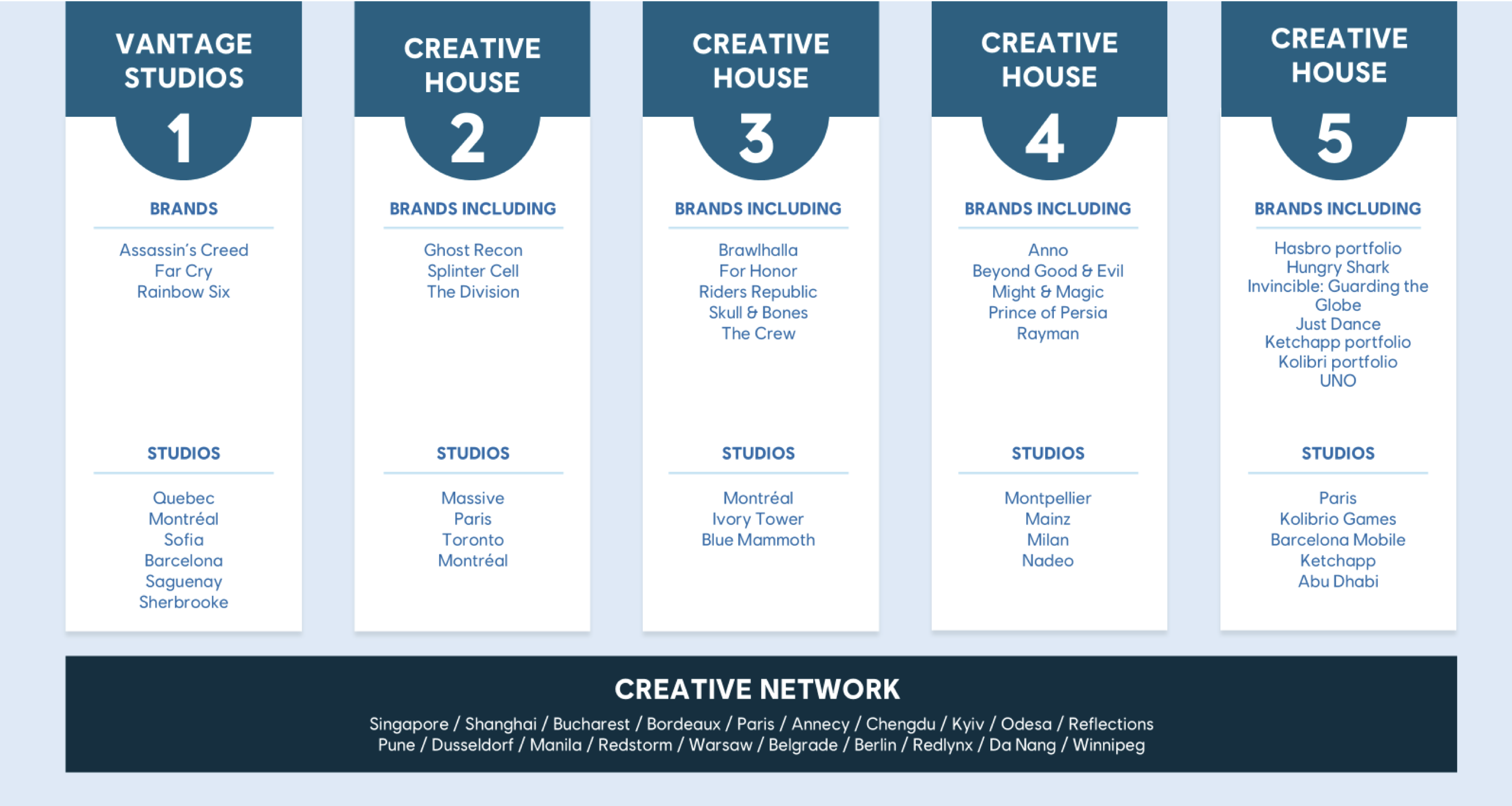 The diagram below shows how Ubisoft’s Creative Houses, which Yves Guillemot claims will deliver a “pipeline of exceptional, high‑quality games” within the next three years, will stack up.