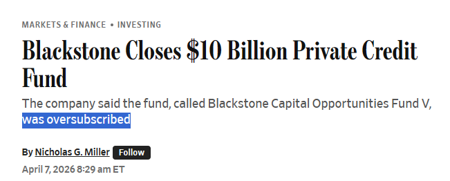 Investors can be prorated on the way in too. “COF V is Blackstone’s largest opportunistic credit fund raised to date, reflecting continued strong institutional demand for private credit." Institutional investors piling in to private credit as retail flees. https://t.co/gjHIJ7Kg2B
