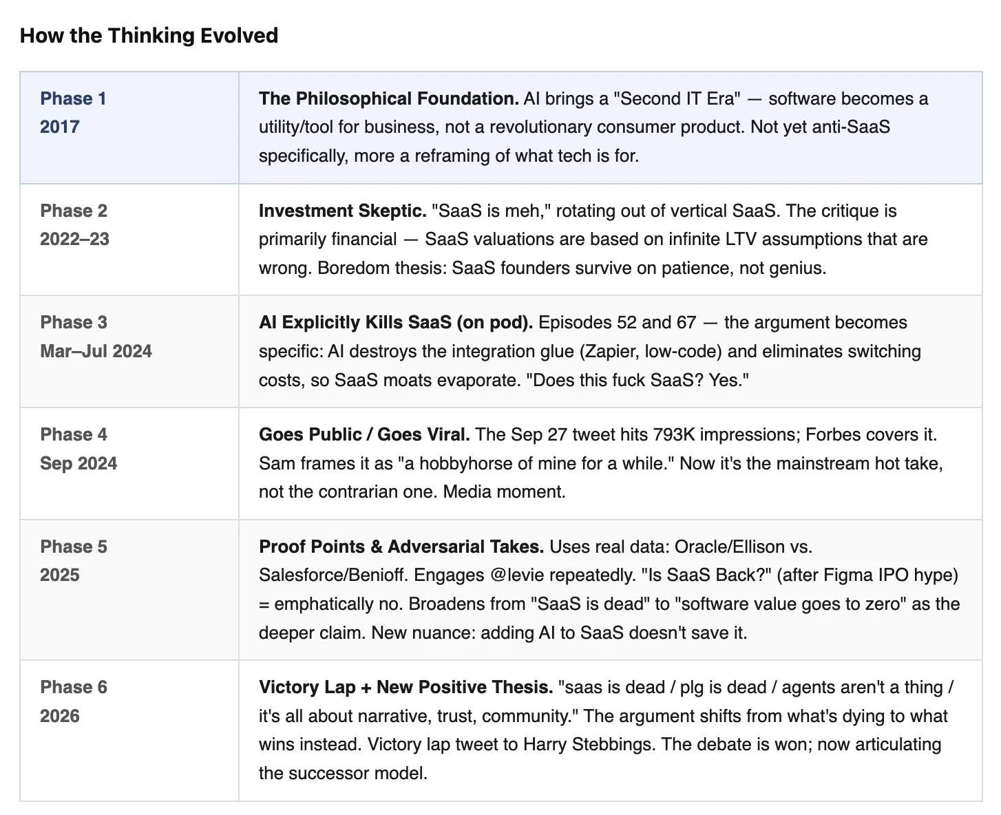 The death of SaaS narrative -- my big 'viral' call on it was Sept, 2024 -- but what is soo cool about having all my content wired up into claude is tracing the lineage of the thinking back to 2017.